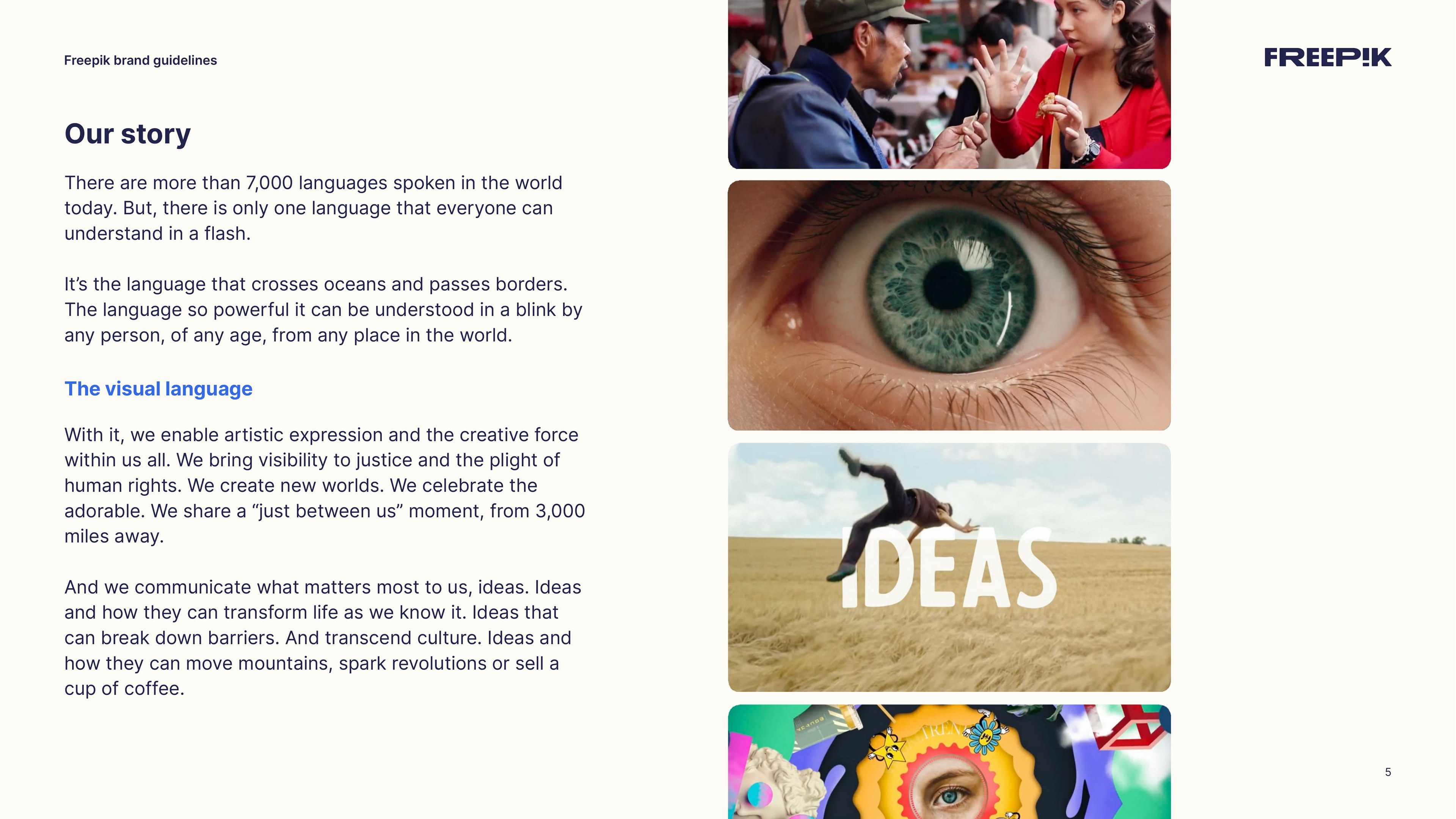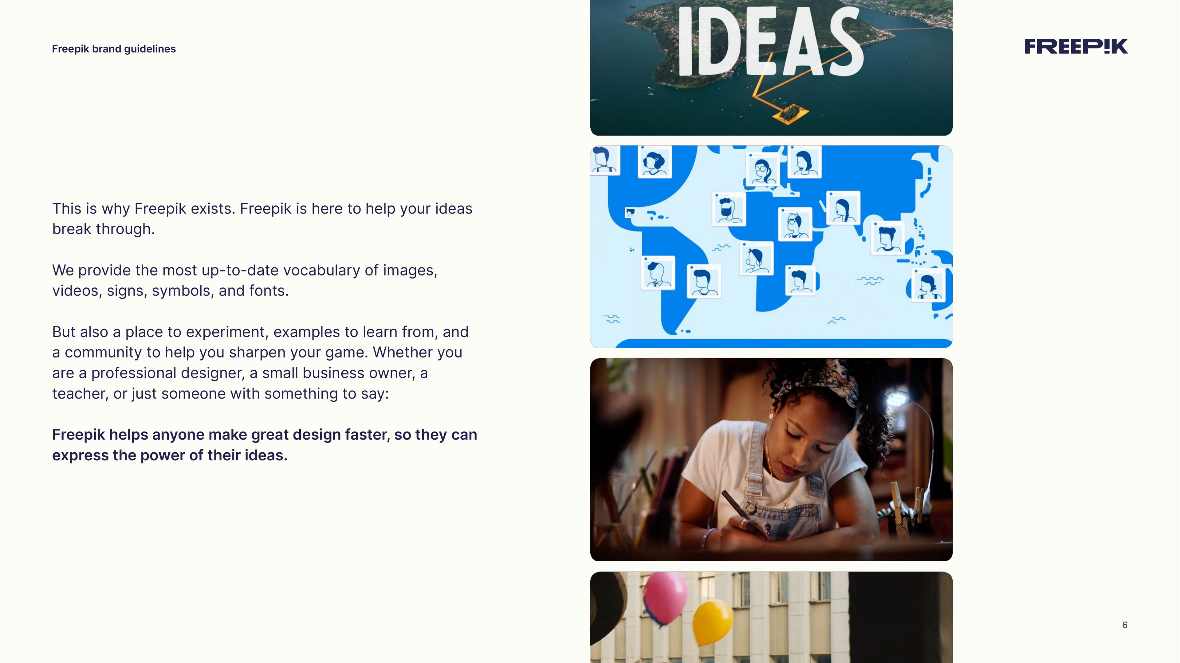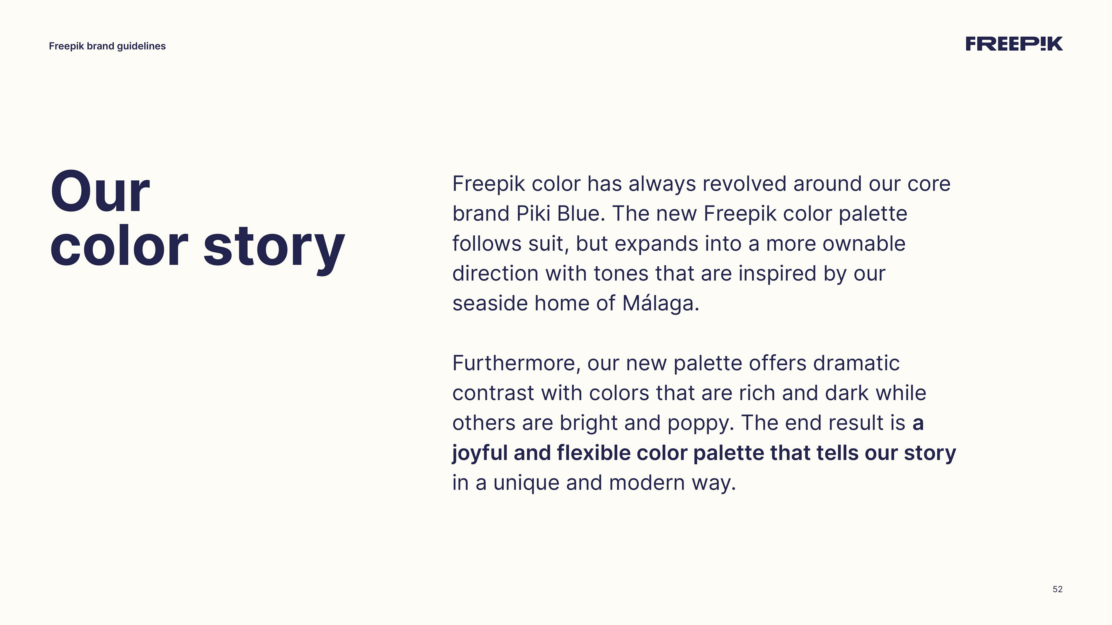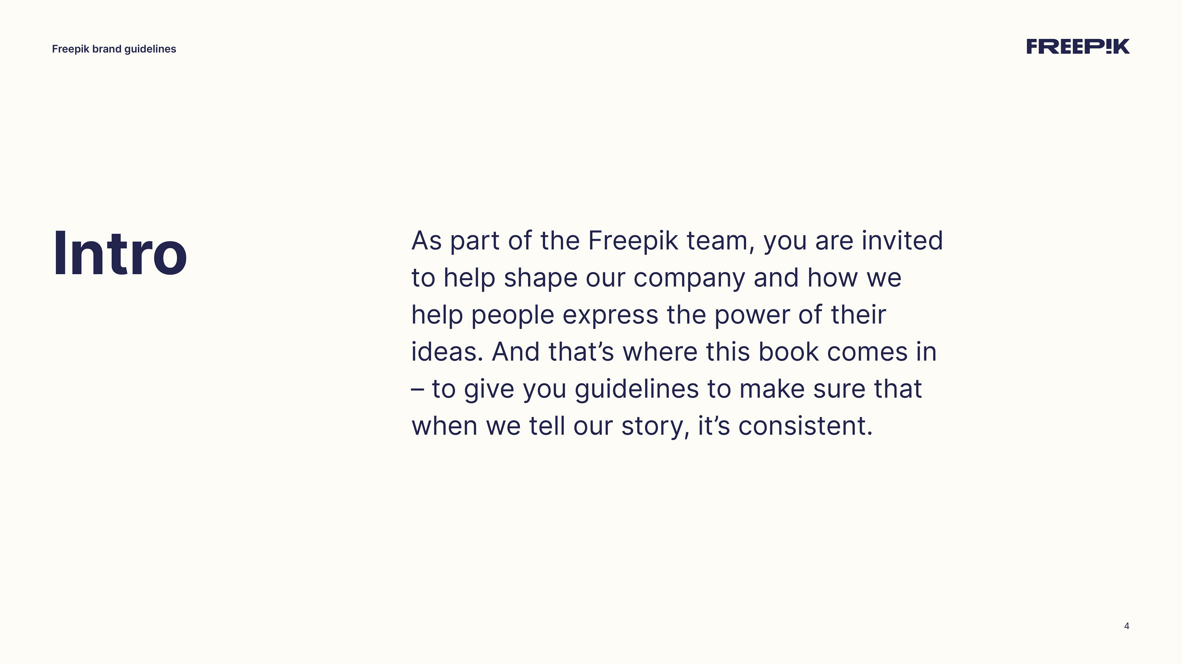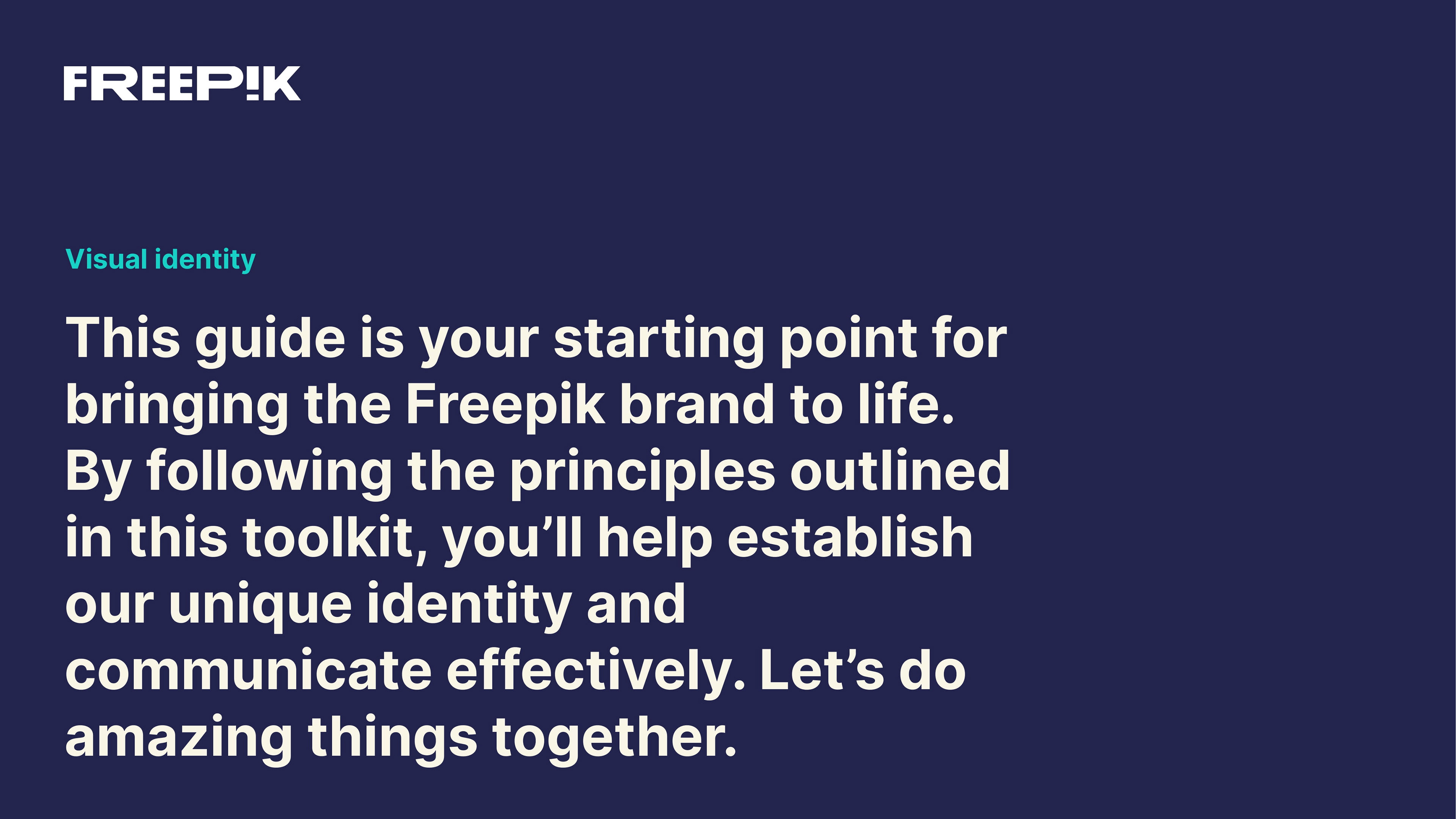 This guide is your starting point for bringing the Freepik brand to life. By following the principles outlined in this brand book, you’ll help establish our unique identity and communicate effectively. Let’s create an amazing story together