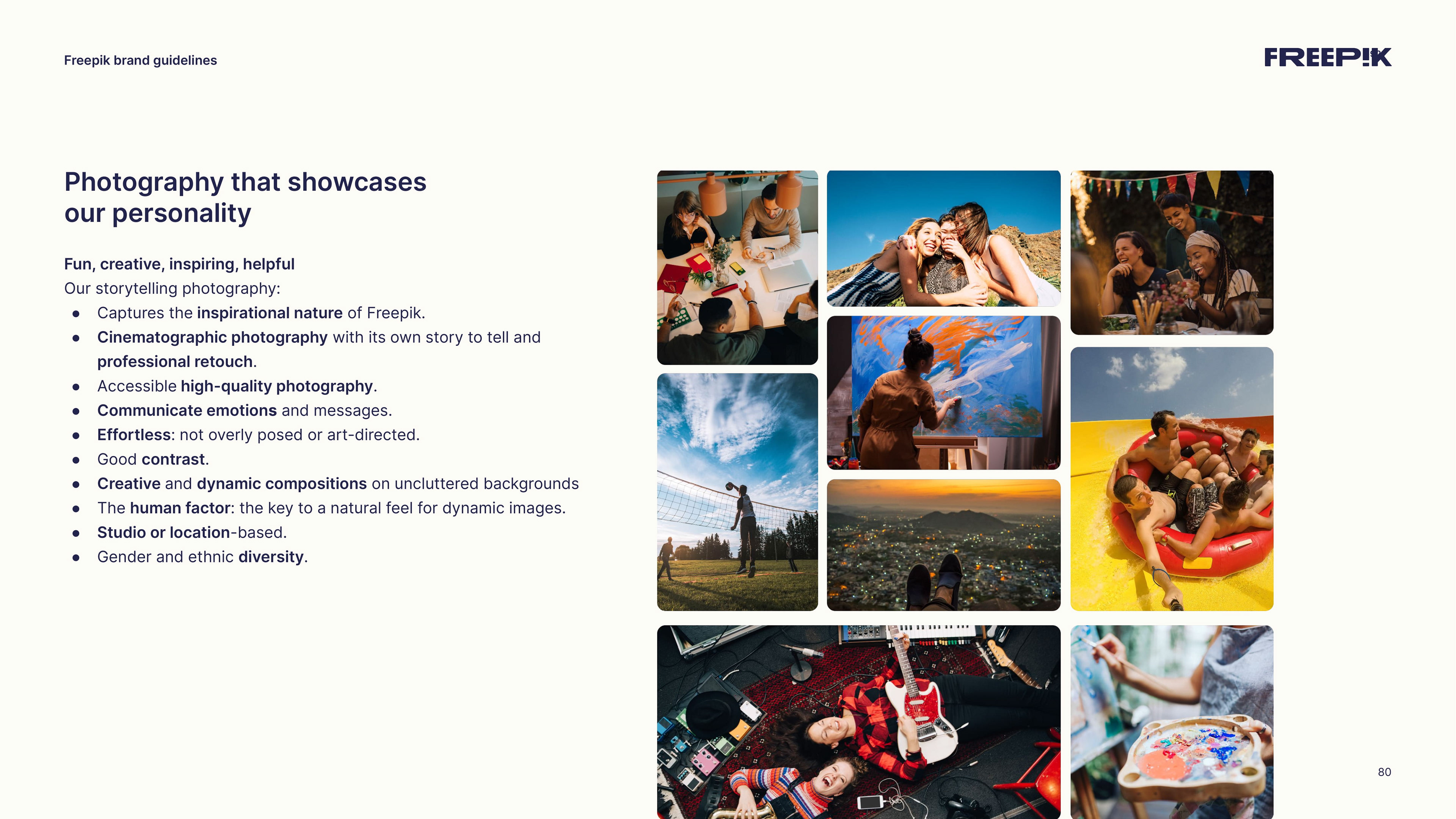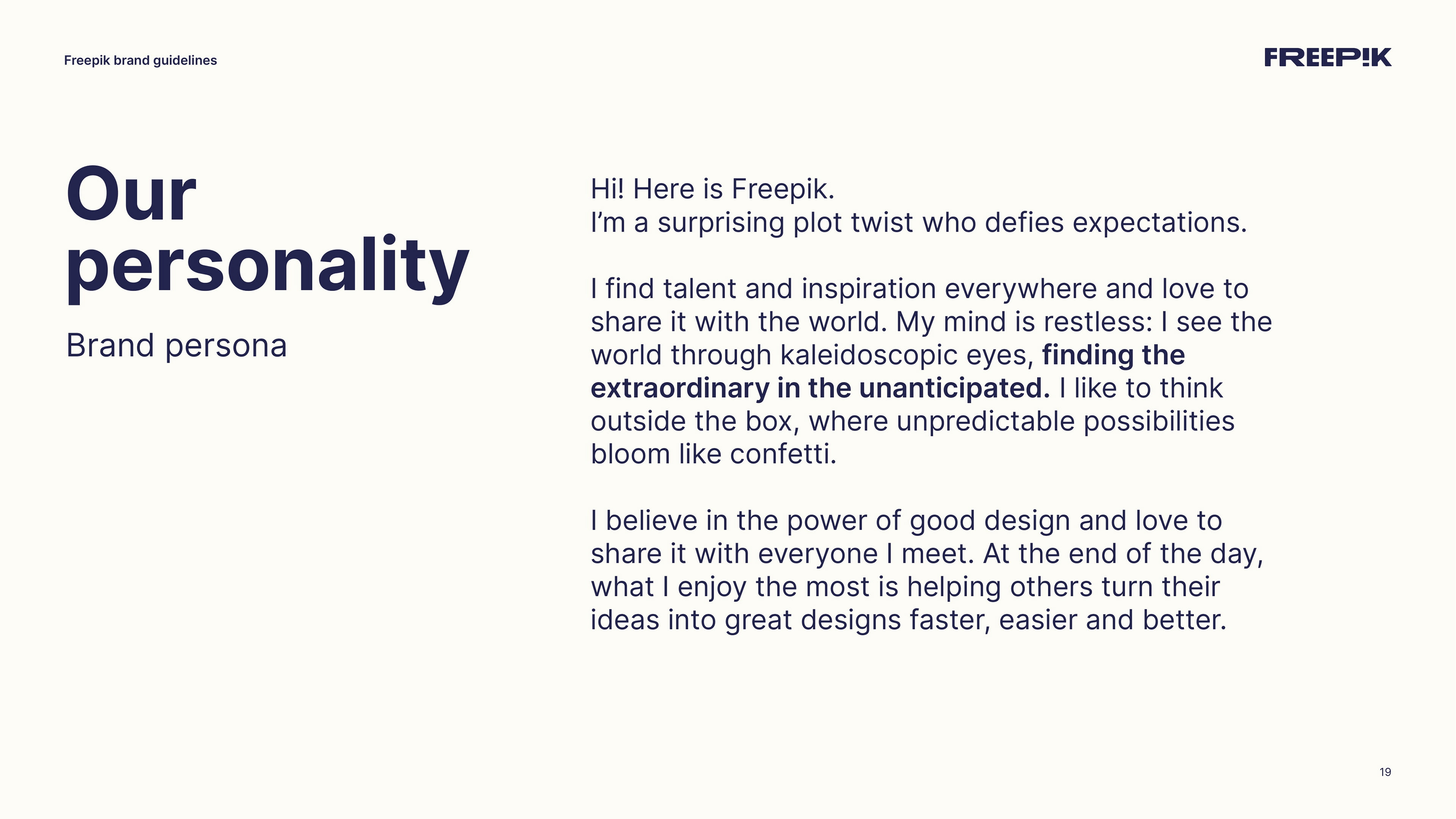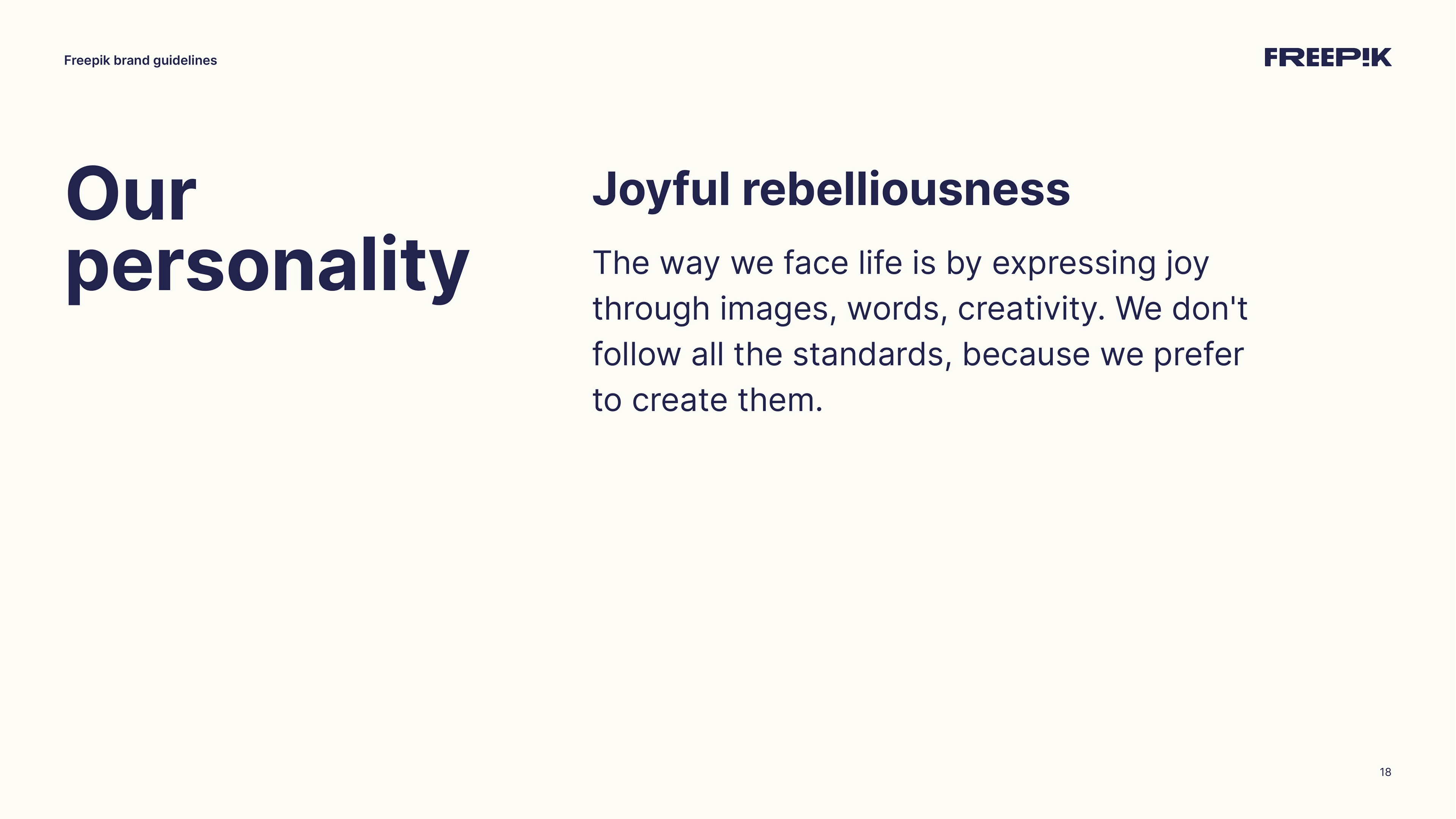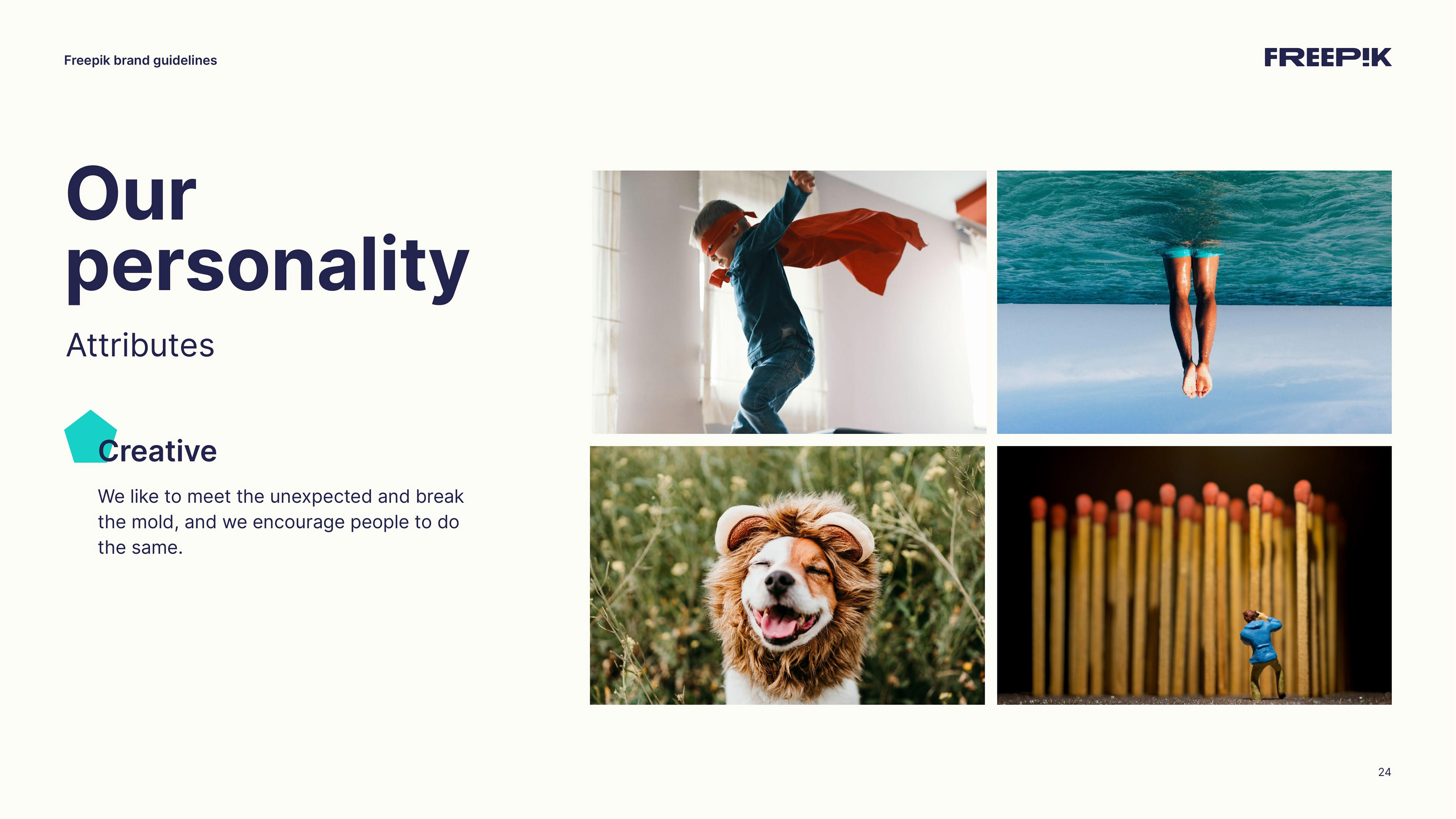 This guide is your starting point for bringing the Freepik brand to life. By following the principles outlined in this brand book, you’ll help establish our unique identity and communicate effectively. Let’s create an amazing story together