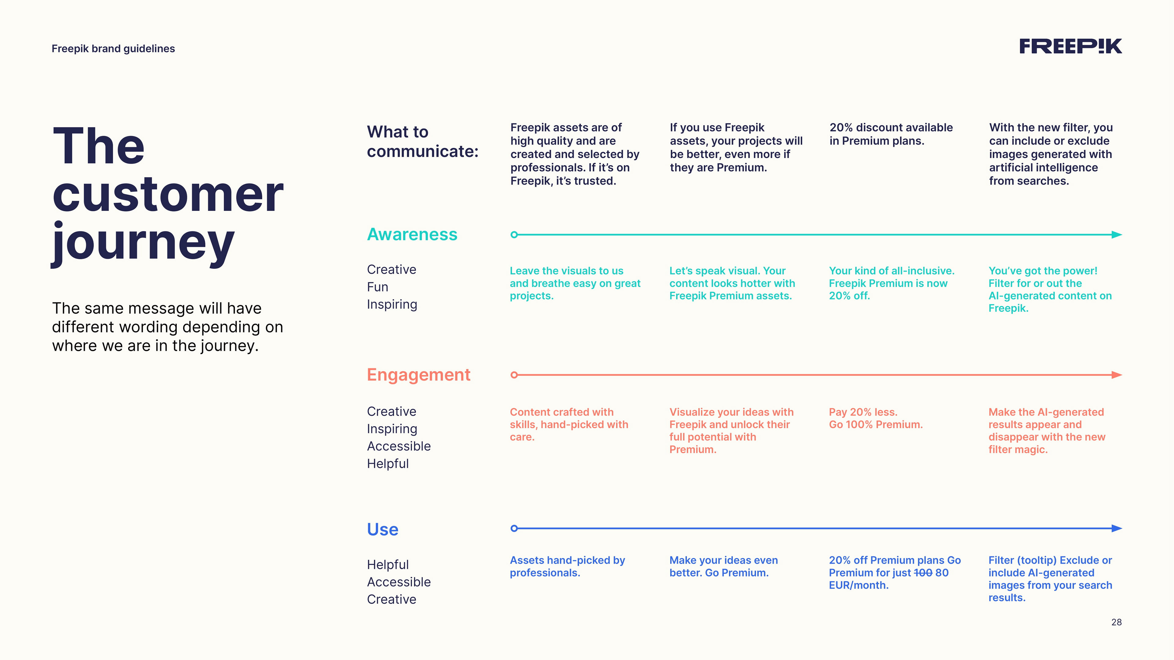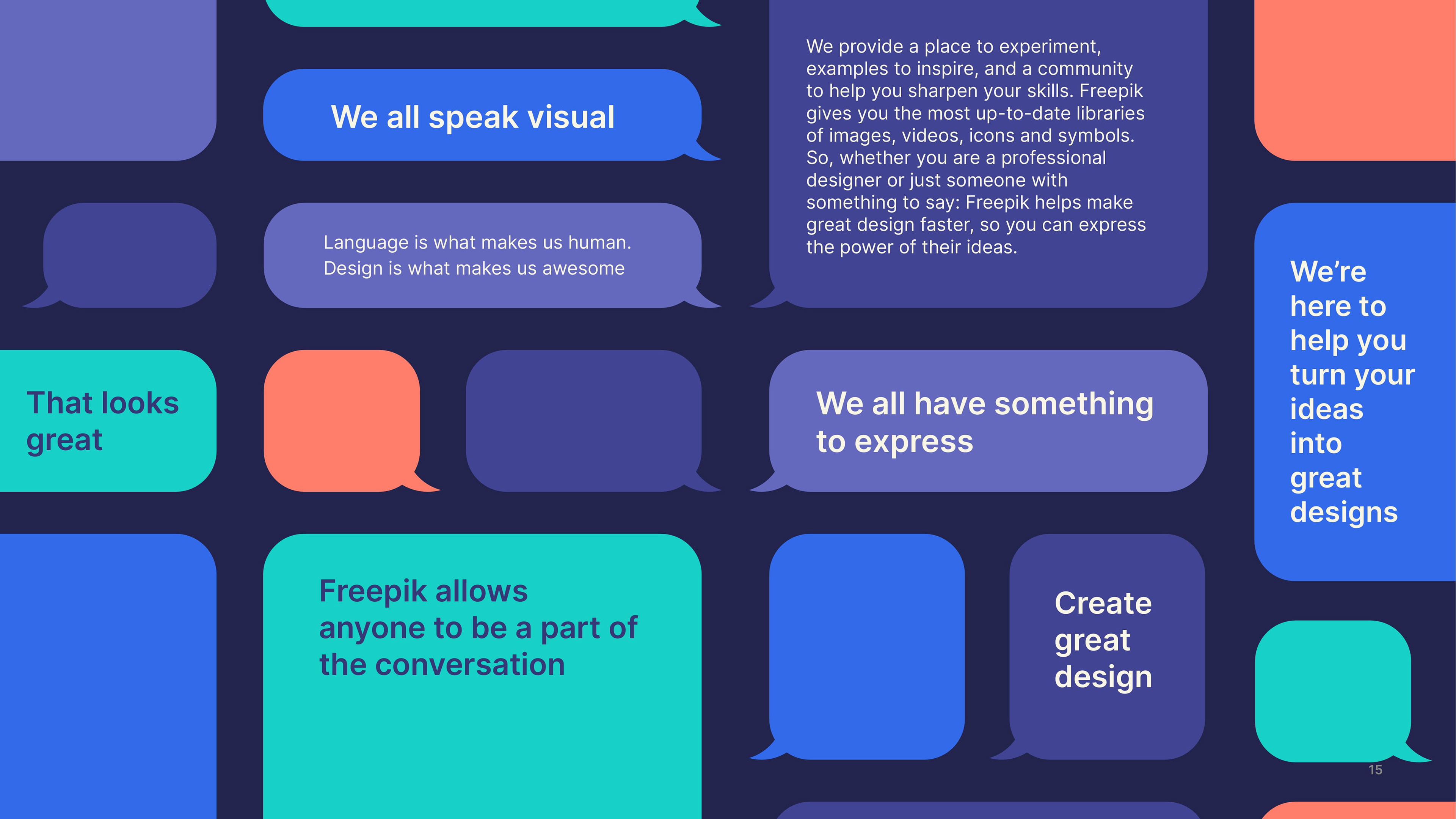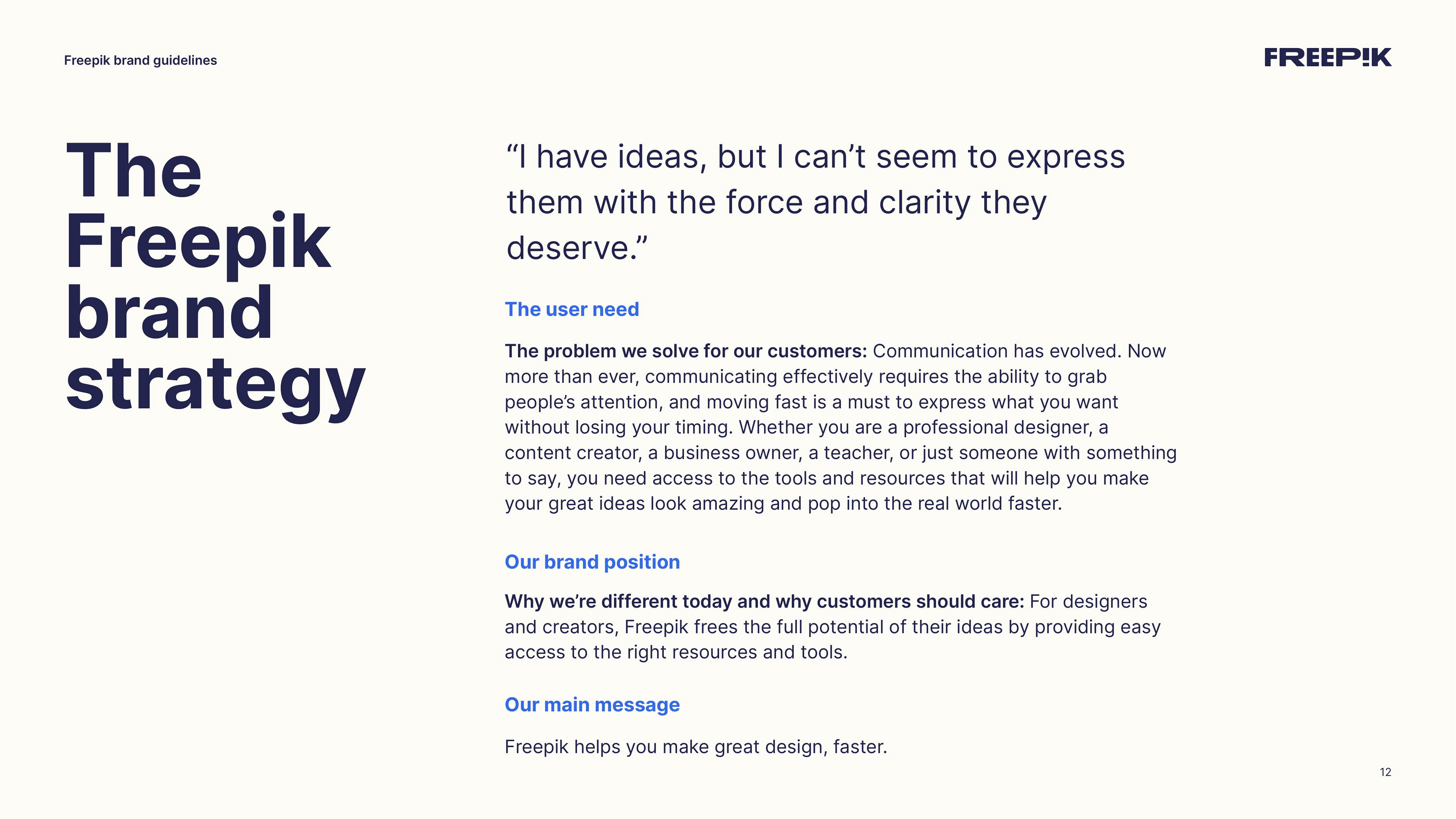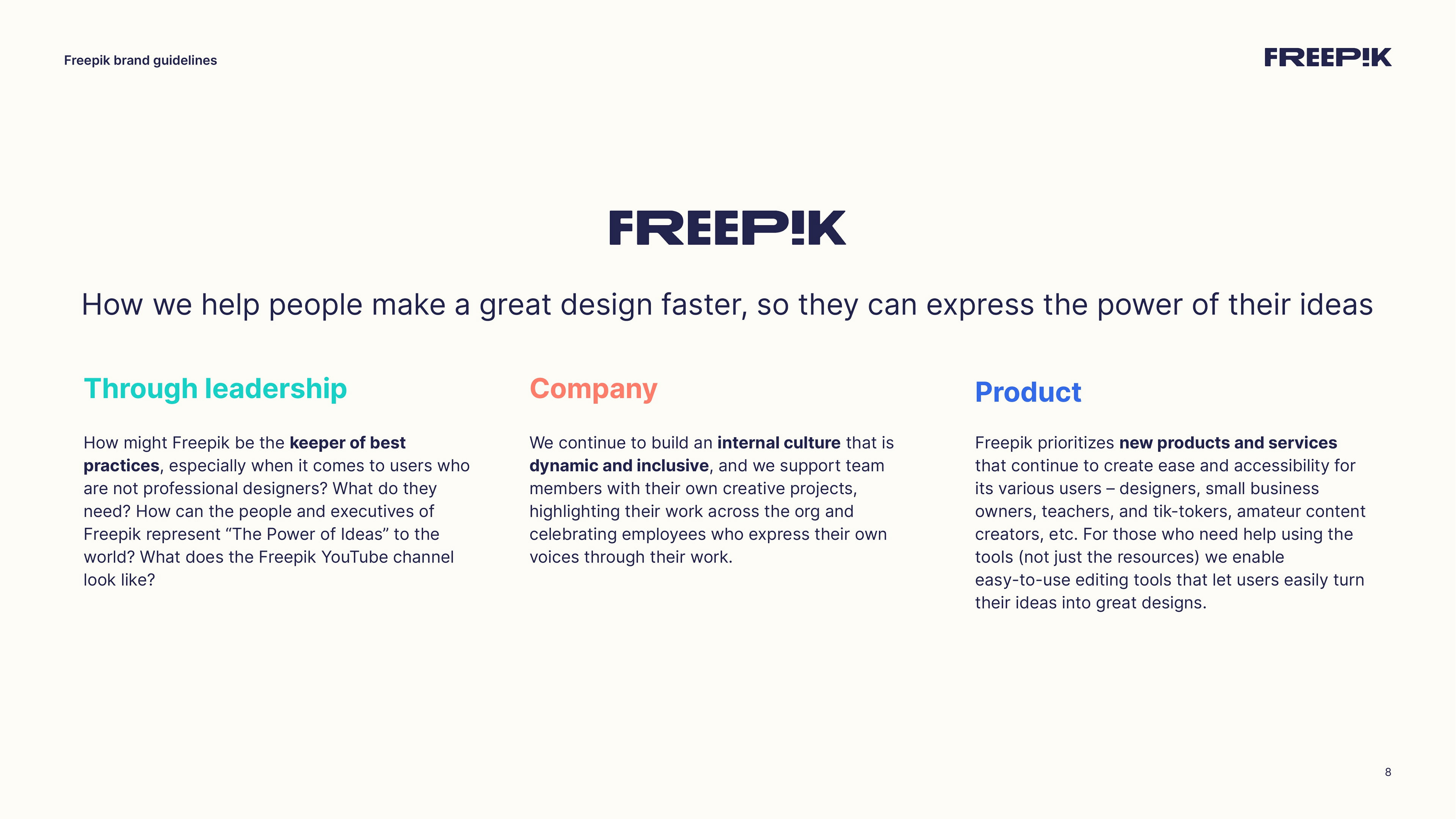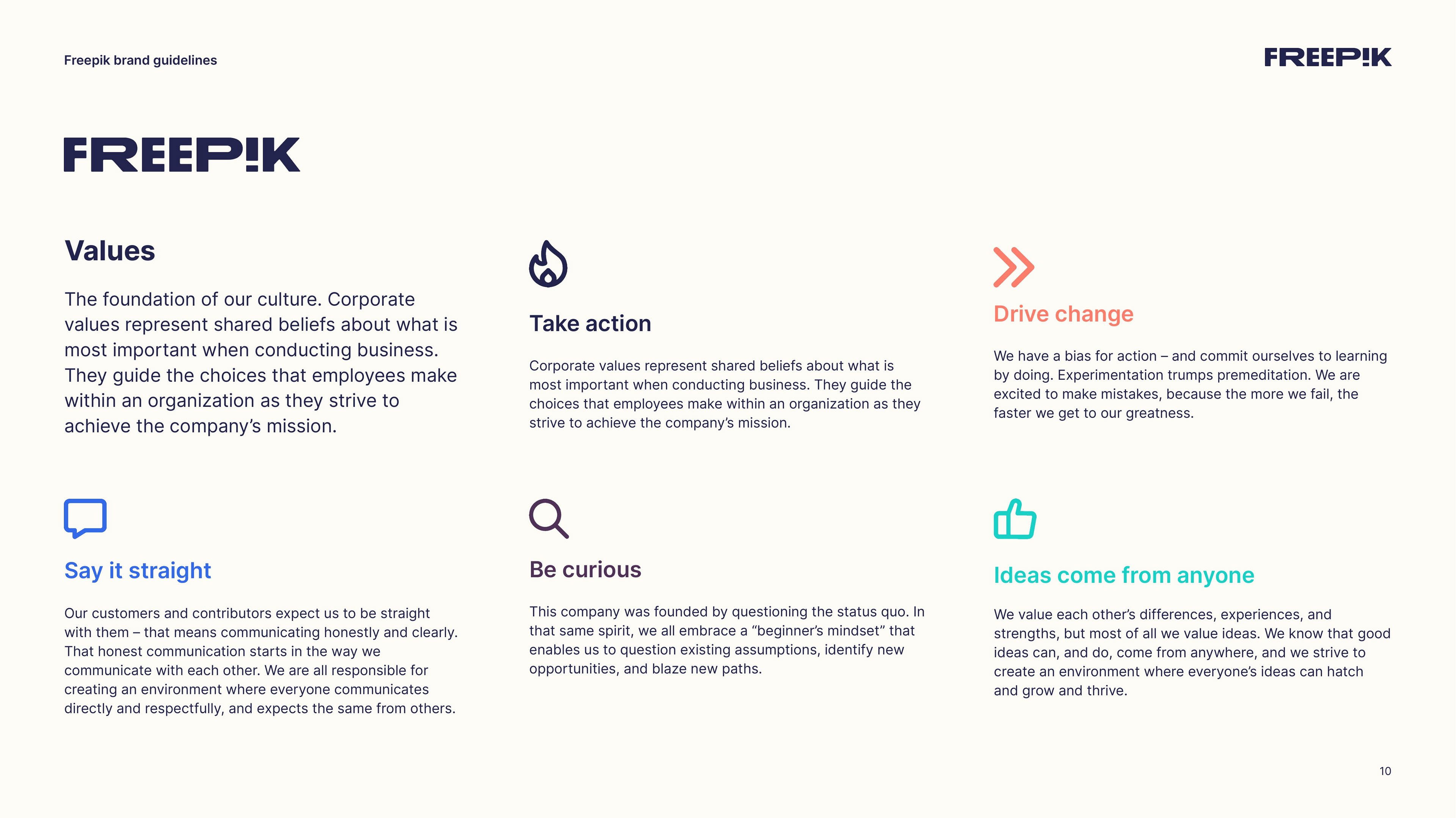 This guide is your starting point for bringing the Freepik brand to life. By following the principles outlined in this brand book, you’ll help establish our unique identity and communicate effectively. Let’s create an amazing story together